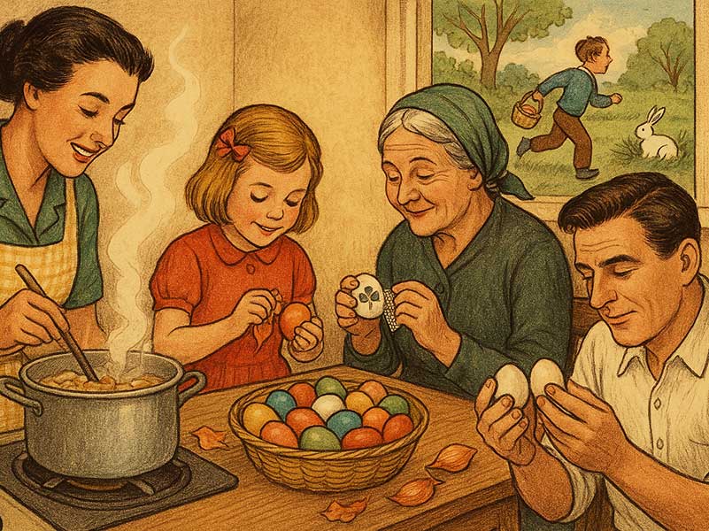 Sećate se onih dana kada se cela kuća pretvori u malu farbaru? Mama kuva jaja, deca brišu ljuske od luka, baba donosi one stare čarape sa rupicama (idealne za jaje s listićem deteline), a tata… pa, tata najčešće pravi test čvrstoće jajima, sve dok ne pobedi sve ukućane.