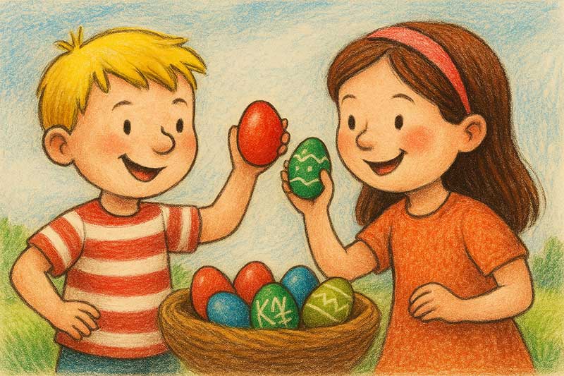 Da li ste znali da je Uskrs najveća potraga na svetu? Ne za blagom, ne za čokoladom (mada i to bude usput), već – za jajima! Uskršnja jaja šuškaju po travi, kriju se iza jastuka, u cipelama, u šerpama, pa čak i u fiokama sa čarapama. Neka su čokoladna, neka plastična puna iznenađenja, a neka prava, skuvana i obojena u stotinu boja!