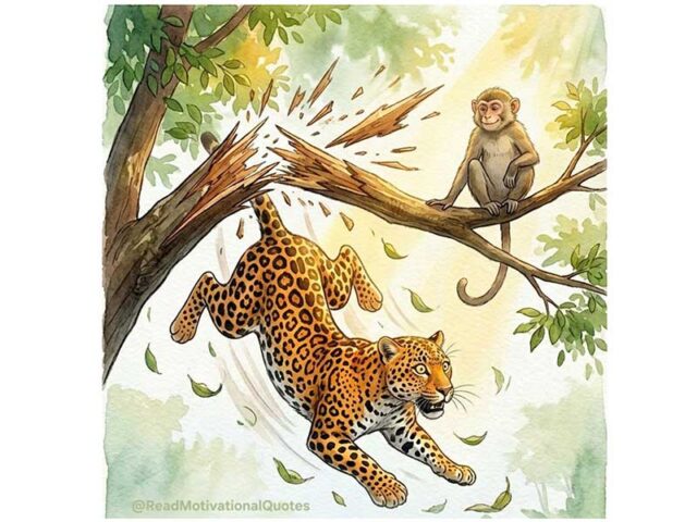 Леопард се срушио – повређен, потресен и понижен – док је мајмун једноставно скочио на другу грану и смејао се одозго.