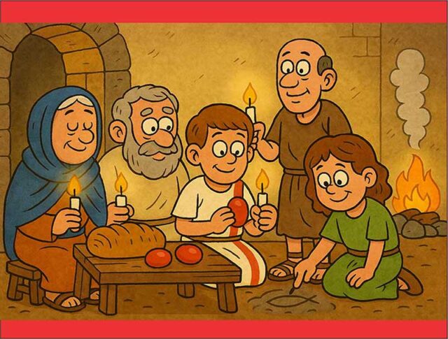 Nije bilo jagnjetine, ali je bilo toplog hleba. Nije bilo vina iz Kapue, ali jeste grožđa osušenog na prozoru. A jaja? Crvena, obojena lukovinom i verom.