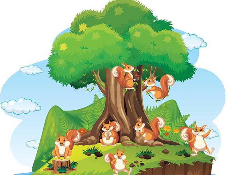mnogo veverica oko drveta